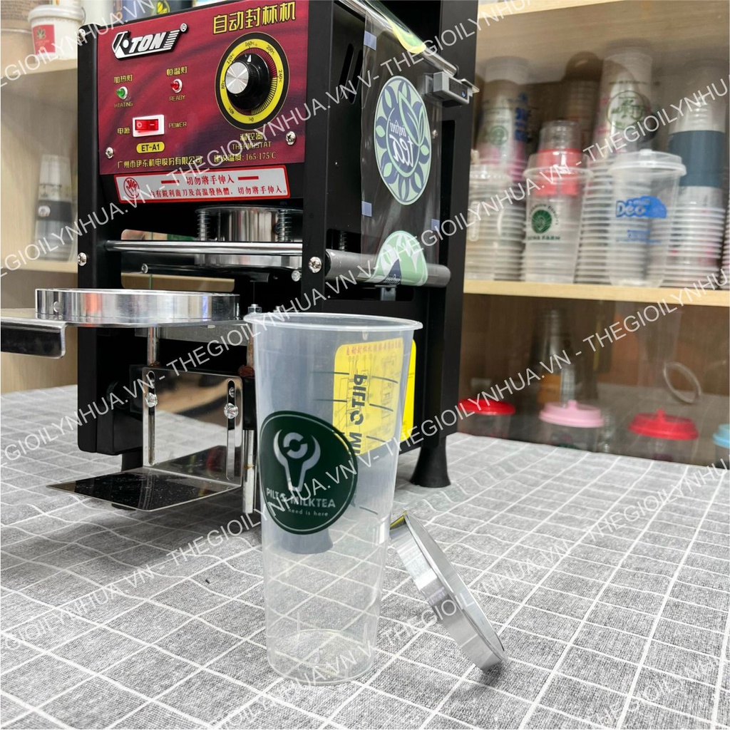 Máy ép ly nhựa, máy dập nắp ly nhựa bán tự động ETON A1, máy dán nắp ly bền được bảo hành 1 năm
