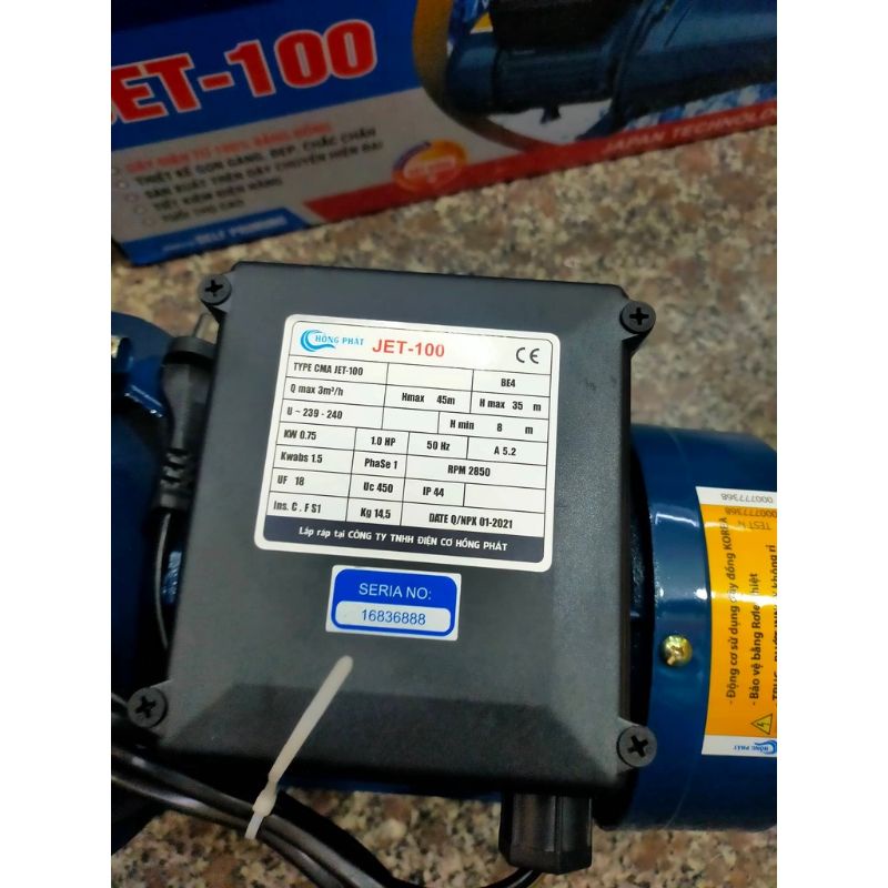 Máy Bơm Con Lợn Cao Cấp KAZUCO Model: J100 √ Công suất: 750W/1P/230V-50HZ √ Cột áp : 36m √ Hút sâu : 9m √ Lưu lượng : 3m3/h - 6 M3/h √ Họng hút xả : 25-25mm √ Xuất sứ : Technology Italy & Việt Nam Ứng dụng Hút giếng khơi, giếng đào, giếng khoan có độ sâu dưới 9m. Luân chuyển nước từ dưới lên cao với độ cào từ 3-7 tầng. Sử dụng tạo áp cho các dàn làm mát, phun mưa hoặc tưới vườn… RẤT PHÙ HỢP VÌ CÁNH GUỒNG TO CÓ THỂ GUỒNG ĐƯỢC NHỮNG NƯỚC CÓ CẶN BẨN , K LO KẸT CÁNH Tính năng nổi bật Tích hợp role chống cháy khi mất nước hoặc nguồn nước không ổn định. Thiết kế chắc chắn, thẩm mĩ , độ bền cao… Hoạt động êm ái,động cơ khỏe và lưu lượng khá … Vật liệu chế tạo Moto hợp kim nhôm Đầu bơm khoang bơm bằng gang Làm mát moto cánh quạt gió Phớt mặt tĩnh gốm, mặt động hợp kim than chì Hệ làm kín zoăng vành mòn cơ khí Rotor trục phớt bằng inox không gỉ. Stator tấm thép silic chất lượng cao, 100% dây đồng nguyên chất Động cơ 2 cực 2900 vòng/phút 220V/50Hz