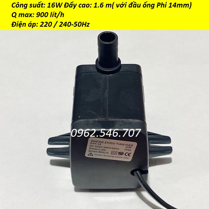 CHI TIẾT SẢN PHẨM Sản phẩm BƠM này chuyên dụng cho điều hoà hơi nước - bể cá thủy cảnh Công suất: 25W Đẩy cao: 2.3 m( với đầu ống Phi 14mm) Q max: 1.500 lít/h Công suất: 18W Đẩy cao: 1.8 m( với đầu ống Phi 14mm) Q max: 1.000 lít/h Công suất: 16W Đẩy cao: 1.6 m( với đ