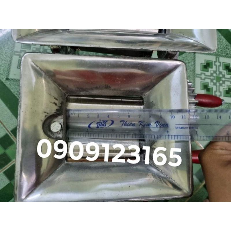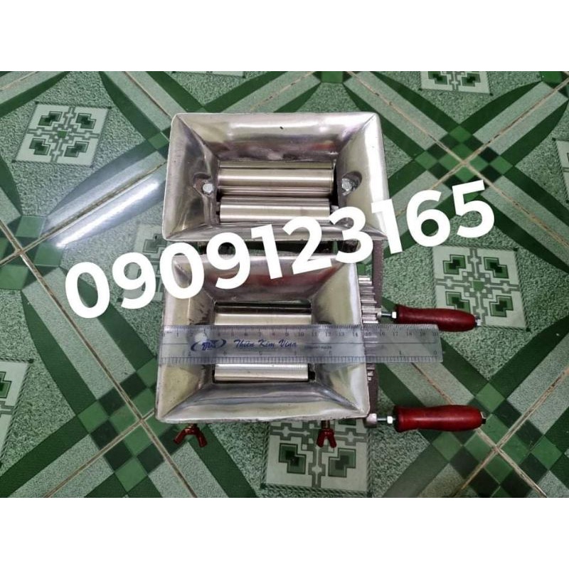Máy cán khô mực: Chất liệu: bên ngoài gang hợp kim, trục quay trong bằng inox. Sản xuất tại Việt Nam. Máy cán khô mực có thể điều chỉnh theo chế độ dày hoặc mỏng. Máy cán khô mực có 2 cỡ: nhỏ, lớn