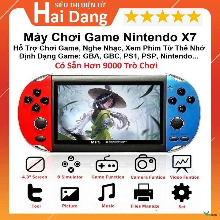 - Máy chơi game cầm tay X7 với thiết kế tinh xảo đẹp mắt giống các mẫu Nintedo 360. Máy chơi game mini có màn hình lớn lên đến 4.3 inch đặc biệt là có cảm ứng, máy chơi game còn được hỗ trợ đọc các file văn bản, có thể xem video nhiều định dạng trình chiếu lên Tivi t