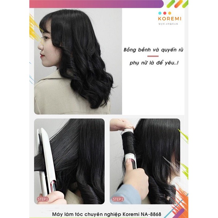 💖 SHOP CAM KẾT: - Sản phẩm đúng hình, đúng mô tả - Hoàn tiền 111% nếu sản phẩm không như mô tả - Bảo hành 1 đổi 1 trong 7 ngày miễn phí 💖THÔNG TIN QUAN TRỌNG Máy duỗi thẳng tóc KOREMI NA8868 Có logo in trong thân má