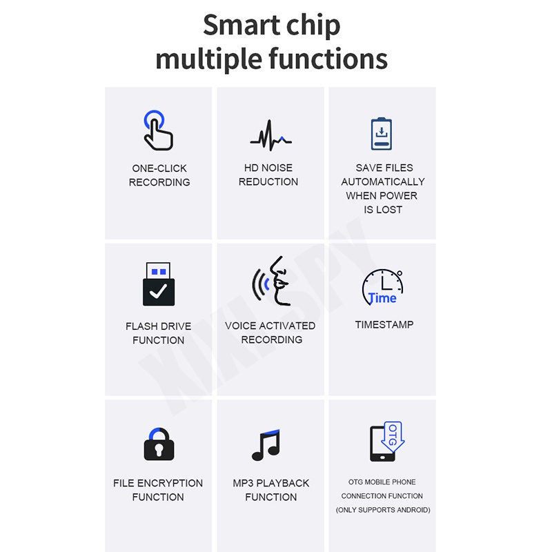 Máy ghi âm hình trái tim Công nghệ Bilack Máy ghi hình trái tim sáng tạo Giá trị của những con người trở thành những con người trong liên kết khả năng của họ sáng tạo, chúng tôi liên tục đổi mới, chỉ để việc chiếm được trải nghiệm tốt hơn Công nghệ đen Hardcore / Hiệu suất mạnh mẽ Ghi âm một cú nhấp chuột Giảm tiếng ồn Hd Tiết kiệm khi tắt nguồn Chức năng đĩa U Giọng nói thông minh được kích hoạt Kết nối điện thoại di động Hủy trên máy này Phát lại nhạc Ghi âm một cú nhấp chuột Thiết kế Âm hãm Ghi âm một cú nhấp chuột Chỉ cần nhấn nút ghi để vào trạng thái ghi trong bất kỳ trường hợp nào, thuận tiện cho việc ghi lại những khoảnh khắc quan trọng. Chất lượng âm thanh tốt phụ thuộc vào chip tốt Giảm tiếng ồn HD Rõ ràng hay không, được xác định bởi "chip", chip giảm tiếng ồn âm thanh chuyên nghiệp và bộ khuếch đại công suất thấp, khôi phục âm thanh thực và rõ ràng. Đầu vào nguồn âm thanh Chip giảm tiếng ồn Khôi phục âm thanh gốc Ghi PCM 1536Kbit Ghi PCM là một định dạng mã hóa ban đầu không nén. Tín hiệu PCM không trải qua bất kỳ xử lý mã hóa và nén nào (nén không mất).Sau khi lấy mẫu, đáp ứng, mã hóa và đầu ra kỹ thuật số, chất lượng âm thanh có thể khá tốt. Ghi kích hoạt bằng giọng nói thông minh Đã kích hoạt bằng giọng nói thông minh Khi phát hiện âm thanh, nó bắt đầu ghi và khi không có âm thanh, nó dừng ghi âm, giúp tiết kiệm hiệu quả bộ nhớ và nguồn pin, và ghi lại mọi âm thanh một cách chu đáo. Ghi lại bằng âm thanh Dừng lại mà không có âm thanh Kiểm soát thời gian ghi Ghi thời gian mọi lúc, mọi nơi, giúp bạn ghi lại cuộc sống tự nhiên hơn, ghi âm trông chất lượng chuyên nghiệp hơn, chức năng thời gian thuận tiện và nhanh chóng hơn, đồng thời đáng để thông thạo thời gian. Ghi âm phân đoạn thông minh đặt thời lượng phân đoạn Smart Timestamp Kết nối máy tính để đồng bộ hóa thời gian Bắc Kinh và các tệp ghi âm được đặt tên sau thời gian bắt đầu ghi âm, thuận tiện cho việc duyệt và tìm kiếm các tệp. Tự động tiết kiệm khi tắt nguồn Khi hệ thống phát hiện không đủ nguồn, máy ghi sẽ tự động lưu tệp trước, sau đó tự động tắt để đảm bảo rằng dữ liệu đã ghi không bị mất. Kết nối máy tính và kết nối điện thoại di động (kết nối điện thoại di động chỉ hỗ trợ Android) Xin lưu ý: Người mua cần vòng cổ và móc chìa khóa bằng kim loại, vui lòng chọn tùy chọn bằng vòng cổ và móc khóa. Trong đó, vòng cổ kim loại có chiều dài 90cm và chiều rộng 3mm Gói hàng bao gồm: Ghi âm giọng nói * 1 Cáp dữ liệu * 1 Hướng dẫn sử dụng (tiếng Anh) * 1