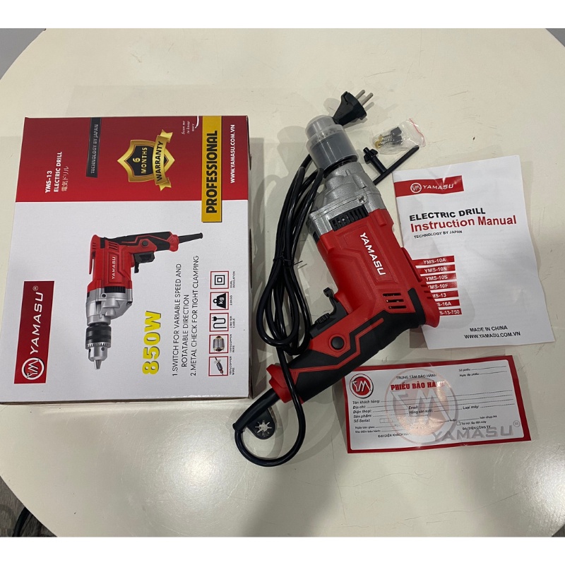 Máy khoan bắt vít 3 tầng răng YAMASU YMS-13 công suất lớn 850W với đầu kẹp bằng kim loại bền và đẹp