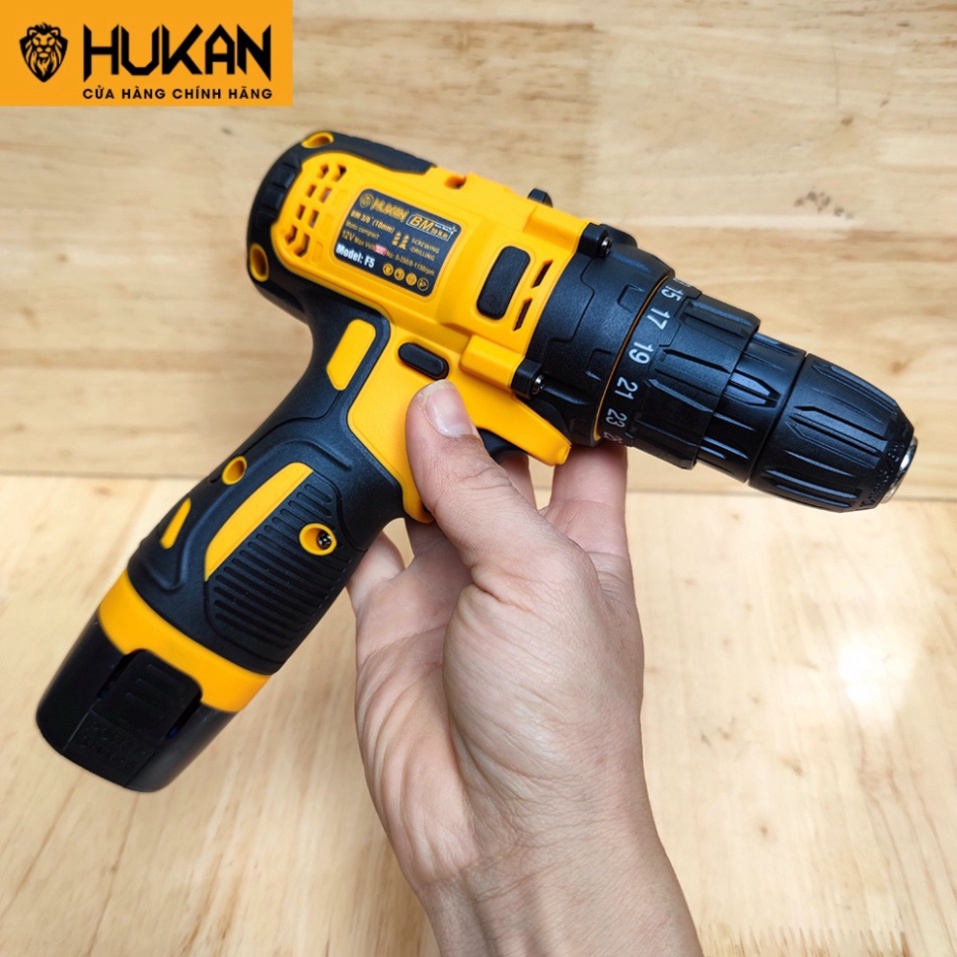 Máy khoan pin 12v HUKAN F5 động cơ không chổi than, bắn vít không dây kèm 2 pin 1 sạc