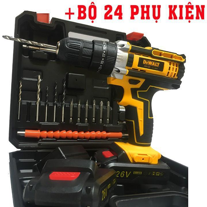 Máy khoan pin Dewalt 26V, Khoan Pin Bắt Vít 24 Phụ Kiện Model 2020