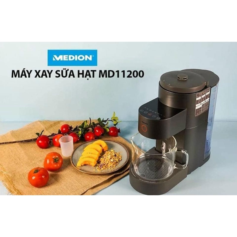 Máy làm sữa hạt Medion MD 11200, 1200W, 8 chương trình tự động, Model 2021 Máy làm sữa hạt Medion MD 19725 là mẫu máy làm sữa hạt cao cấp nhất trên thị trường của hãng Medion. Sản phẩm này là mơ ước của khá nhiều chị em, bởi vì em nó quá hoàn hảo nhưng chỉ tiếc giá hơi cao. Tuy nhiên giá bán tương xứng với chất lượng hoàn hảo của em nó. Từ nhu cầu thực tế đó trong năm 2021 hãng Medion đã lập tức điều chỉnh và cho ra đời sản phẩm mới để giúp người dùng có cơ hội trải nghiệm sản phẩm làm sữa hạt, hãng này cho ra đời một phiên bản rút gọn đó máy làm sữa hạt Medion MD 11200 – Model 2021. Đặc điểm nổi bật của Máy làm sữa hạt Medion MD 11200 📌 Siêu phẩm này là dòng sản phẩm mới nhất, đỉnh nhất của thương hiệu Medion trong năm 2021. 📌 8 chương trình tự động và linh hoạt: Ngũ cốc (đậu đen, đậu gà, đậu xanh, gạo lứt…), hạt đậu nành khô, hạt đậu đã ngâm nước, sữa yến mạch, sữa hạnh nhân, sinh tố, vệ sinh, sấy khô. Trong đó có 4 chế độ xay nấu trong 25 phút và 2 chế độ xay không nấu (sinh tố và sữa yến mạch) trong 3 phút 📌 Đặc biệt máy xay cực mịn, bạn KHÔNG CẦN LỌC qua rây mà chỉ cần tận hưởng ngay một cốc sữa nhà làm cực dễ dàng và nhanh chóng. 📌 Dòng máy thông minh với cải tiến làm tất cả các loại hạt được nấu chín bằng hơi nước, cho ra những ly sữa không bao giờ bị cháy khét, như cách đun nấu truyền thống . 📌 Quá trình xay nấu hoàn toàn tự động với thời gian, nhiệt độ phù hợp từng loại hạt. Các chất dinh dưỡng vitamin, protein có giá trị được giữ lại nguyên vẹn trong ly sữa. 📌 Thiết kế màn hình, dễ thao tác với các nút hiển thị bằng đèn LED vô cùng hiện đại. 📌 Máy có tính năng tự động vệ sinh, sấy khô. Bạn không cần phải vác cái cối thủy tinh nặng nề đi cọ rửa như các loại máy làm sữa hạt khác.