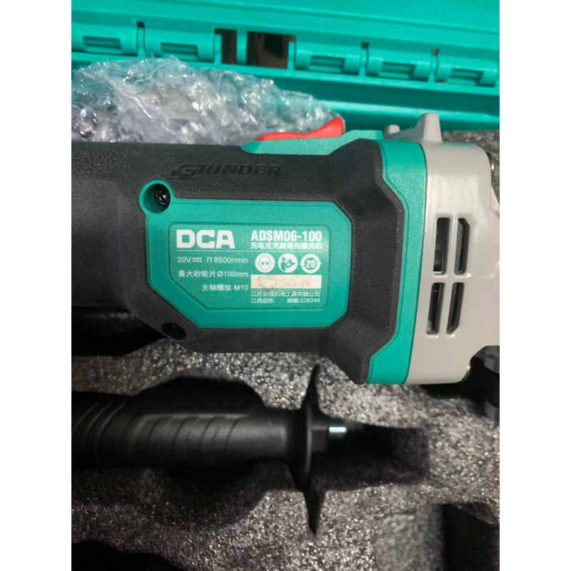 💥💥💥Mới MÁY MÀI GÓC DÙNG PIN DCA CHÍNH HÃNG 20V ADSM06-100 Thông số kĩ thuật - Mã sản phẩm: ADSM06-100 - Thương hiệu: DCA ( TypEEM) - Xuất xứ: Trung Quốc - Dung lượng pin: 20V/4.0Ah x 2 - Đường kính đĩa mài: 100mm - Đường kính lỗ cốt: 16mm - Tốc độ không tải: 8500 v