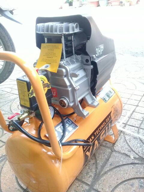 MÁY NÉN KHÍ YASU NHẬT 30L có dầu TẶNG KÈM DÂY XOẮN 6M, SÚNG XỊT HƠI, ĐẦU BƠM BÁNH XE. + Chuyên phun sơn PU, bơm bánh xe oto, xe máy,....sử dụng cho công trình hoặc DIY tại nhà. + Máy nạp hơi cực nhanh đủ cho nhu cầu sử dụng, độ bền rất cao. + Thời gian hoạt động liên tục cao để hoàn thành công việc. ***THÔNG SỐ KỸ THUẬT*** Tên sản phẩm: Máy nén khí YASU có dầu + Mã sản phẩm: YS _30 +Dung tích bình chứa: 30 lít + Công suất: 3HP (2250w 100% dây đồng) + Áp lực: 8 Bar (115 Psi) + Lưu lượng khí: 170L/Min + Điện áp: 220V-50Hz Bảo Hành 06 Tháng +Thương hiệu: Nhật Bản + Sản xuất theo công nghệ tiên tiến của Nhật Bản lắp ráp tại Trung Quốc.