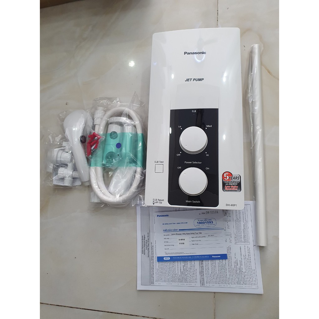 Máy nước nóng Panasonic DH-4RP1VW hoạt động theo cơ chế đun nóng trực tiếp, sử dụng điện trở phát nhiệt làm từ đồng thau giúp làm nóng nhanh chóng và sử dụng trong thời gian lâu dài. Máy có sức hoạt động mạnh mẽ với công suất 4.5 kW giúp đun nóng nước trong thời gian ngắn mà vẫn tiết kiệm điện năng tiêu thụ.Máy nước nóng Panasonic DH-4RP1VW có hệ thống các nút điều khiển dạng xoay rất đơn giản, dễ sử dụng. Người dùng chỉ cần xoay nút để bật tắt máy và điều chỉnh nhiệt độ tùy theo nhu cầu sử dụng. đặt máy ở những vị trí có áp lực nước thấp, bơm trợ lực sẽ giúp hút nước để đủ cho máy hoạt động ở trạng thái như bình thường. (Xem thêm Công dụng của bơm trợ lực trên máy nước nóng). Bơm có màng chắn bụi giúp ngăn ngừa bụi than bám trên các linh kiện điện tử. Do dó, trong quá trình sử dụng máy hoạt động siêu êm và hạn chế những tiếng ồn khó chịu. Vòi sen được thiết kế hiện đại với khả năng phun nước nhanh, mạnh và đều, tạo cảm giác thoải mái, dễ chịu nhất khi sử dụng. Hơn nữa, vòi sen có tính năng chống khuẩn sẽ giúp đem lại làn nước sạch sẽ, bảo vệ làn da và sức khỏe người dùng. Máy nước nóng Panasonic DH-4RP1VW được trang bị chức năng chống giật điệnvới cầu dao chống rò điện (ELB). Khi phát hiện có rò rỉ điện hoặc cường độ dòng điện vượt quá 15 mA, ELB sẽ ngắt mạch điện tức thì để bảo vệ người dùng. Hơn nữa, máy có cảm biến nhiệt, giúp ngắt điện khi nhiệt độ nước quá cao, vượt quá mức ấn định của hệ thống, tránh gây bỏng cho người dùng. Dòng chảy của nước cũng được máy kiểm soát chặt chẽ nhờ cảm biến nước, hay còn gọi là cảm biến dòng chảy. Tính năng này sẽ tự động điều chỉnh công suất phù hợp với lượng nước để tránh tình trạng đun nước quá nóng khiến người dùng bị bỏng. Ngoài ra, khi dòng nước quá yếu thì cảm biến dòng chảy sẽ tự ngắt điện, tránh những sự cố đáng tiếc. Thiết kế nhỏ gọn, đẹp mắt dễ sử dụng Máy nước nóng Panasonic DH-4RP1VW có thiết kế nhỏ gọn cùng kiểu dáng và màu sắc trang nhã, giúp tiết kiệm diện tích và góp phần làm đẹp cho không gian nhà tắm của gia đình bạn. Máy nước nóng Panasonic DH-4RP1VW thuộc thương hiệu Panasonic nổi tiếng trên thị trường, là lựa chọn lý tưởng cho phòng tắm của mọi gia đình Máy nước nóng Panasonic DH-4MP1VW là dòng sản phẩm cao cấp. Tuy máy đã ra mắt khá lâu nhưng vẫn luôn nằm trong top bán chạy hàng tháng tại chứng tỏ máy luôn nhận được sự quan tâm và tin dùng của rất nhiều khách hàng. Máy được trang bị nhiều tính năng an toàn, rất dễ sử dụng, làm nóng nước chưa đến 1 phút. Phù hợp lắp đặt ở khu vực miền Nam, và với thiết kế nhỏ gọn thích hợp cho nhiều không gian phòng tắm. THÔNG TIN CHI TIẾT TÍNH NĂNG Công suất: 4.5kW Bơm trợ lực vận hành siêu êm Hiệu suất tốt hơn cho áp lực nước thấp (0.05 kgf/cm2) Vòi sen thiết kế tiêu chuẩn Bơm bảo hành 5 năm Van cấp nước với chức năng lọc sạch Điều chỉnh nóng theo 3 cấp độ: thấp, trung bình, cao Hiệu suất tốt hơn cho áp lực nước thấp 0.05(kgf/cm2) Đóng gói 4 cái 1 kiện