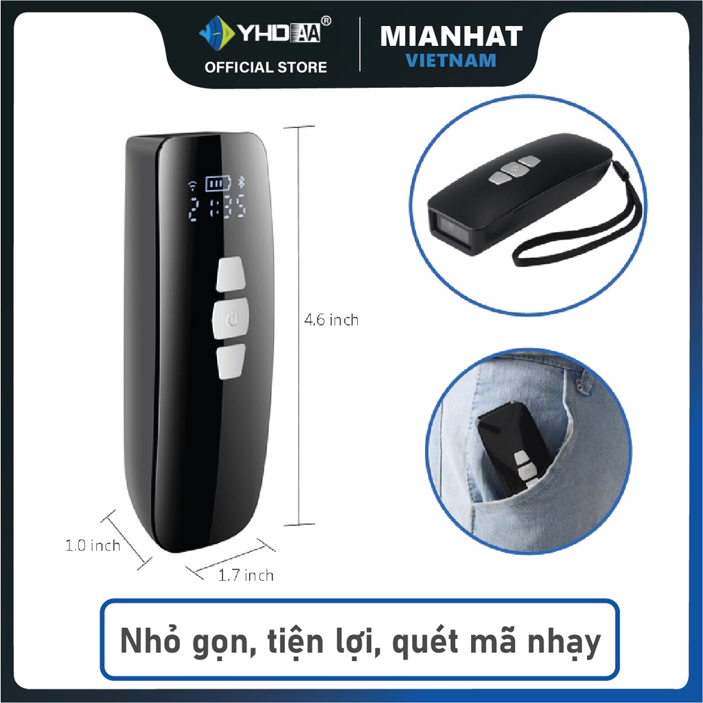 Máy quét mã vạch mini YHD 3200CB 1D, Đầu đọc Barcode cầm tay bỏ túi nhỏ gọn kết nối Bluetooth hoặc Không dây 2.4G