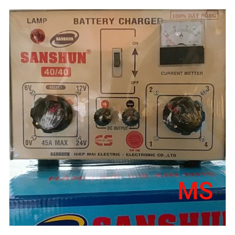 Máy sạc bình ắc quy 6V-12V-24V sanshun 40A dây đồng dùng cho ắc quy 200Ampe