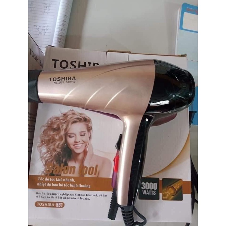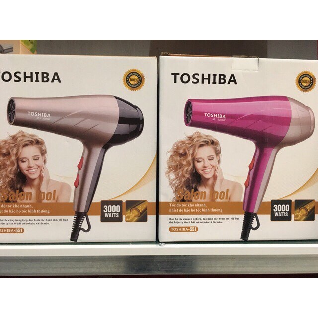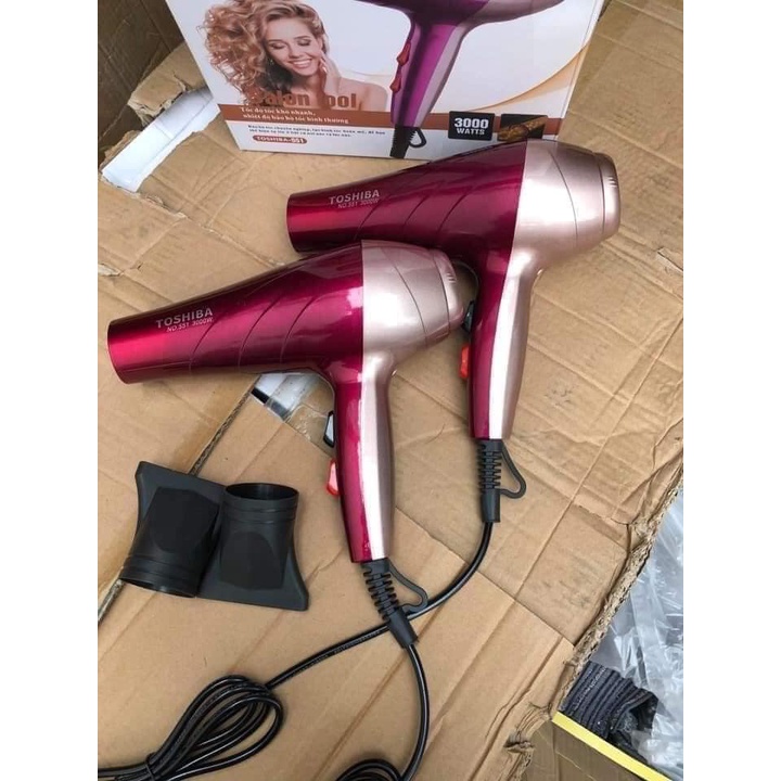 MÁY SẤY TÓC TOSHIBA 551 CÔNG SUẤT 3000W (sẵn hàng) ======== 💋💋💋Máy sấy tóc TOSHIBA là 1 trong những sản phẩm, công cụ tạo kiểu tóc nam nữ không thể thiếu được đặc biệt là đối với những ai yêu thích tạo kiểu tóc. TOSHIBA 3000W là chiếc máy sấy vô cùng tiện lợi và cực dễ dàng😍😍 🔐 CÔNG DỤNG : Máy sấy tóc công suất lớn 3000w bên cạnh có khả năng tạo phồng, uốn xoăn tạo ra các nếp tóc cho nhiều kiểu tóc đẹp khác nhau. Với 3 mức nhiệt khác nhau như nóng, vừa mát kèm theo 3 mức thổi vừa mạnh khác nhau bạn có thể sử dụng cho nhiều nhu cầu và mục đích khác nhau. 📋 THÔNG TIN CHI TIẾT🥳 🥳 🥳 - Máy tạo luồng gió an toàn không làm tổn thương cho tóc và da đầu. - Có 3 chế độ sấy dựa vào 2 tiêu chí tốc độ và nhiệt độ của máy.😲 - Kiểu dáng sang trọng kèm đầu tản nhiệt dễ dùng và tiện dụng. - 2 tốc độ sấy thích hợp cho cửa hàng làm tóc chuyên nghiệp - Công suất 3000W - Nguồn điện 220V/50Hz 🔑🔑🔑 LƯU Ý : + Không nên sử dụng máy sấy tóc trong môi trường khí gas. + Giữ cho bàn tay bạn khô ráo khi sử dụng. + Không mang vào phòng tắm hoặc những nơi có nhiều nước, ẩm ướt. + Không chặn cửa hút gió và cửa ra của máy sấy tóc.