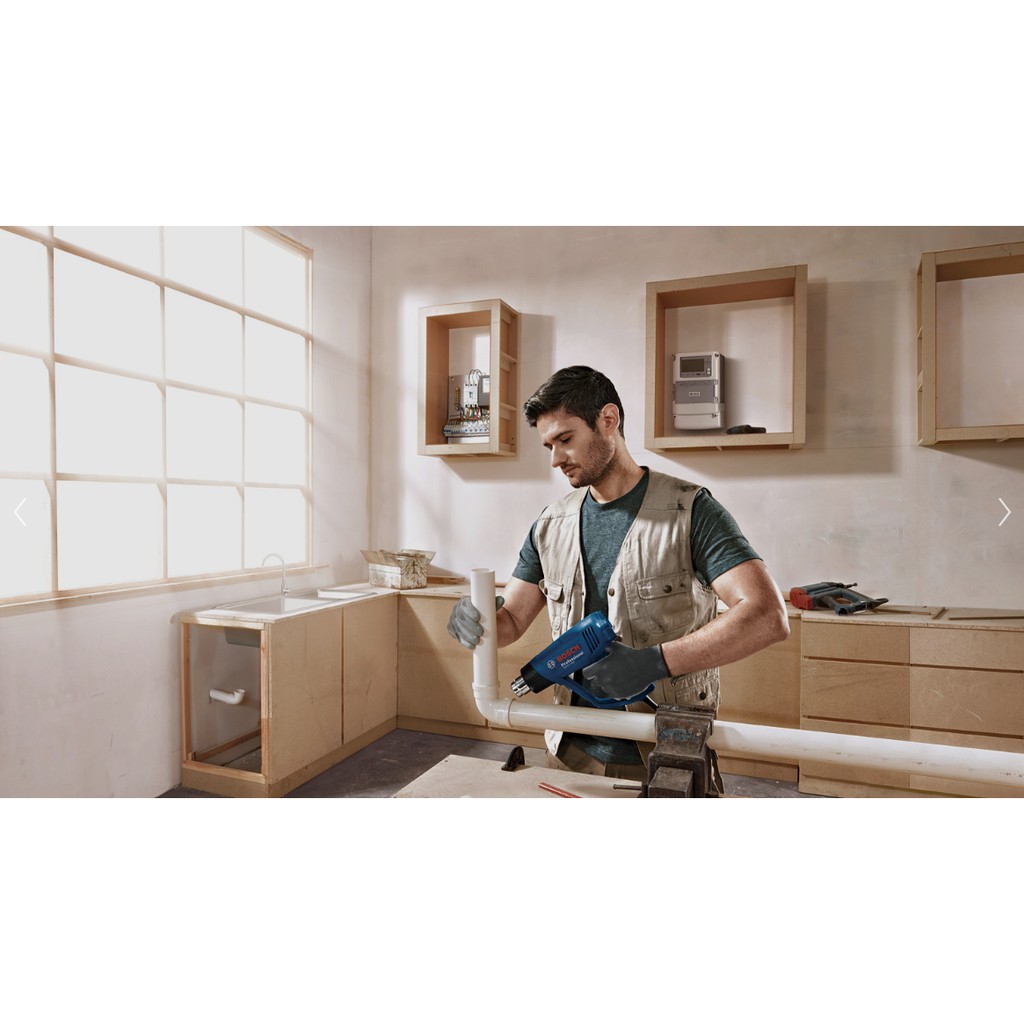 Máy thổi hơi nóng Bosch GHG 18-60: Với kiểu dáng nhỏ gọn có tính linh hoạt cao, sẵn sàng sử dụng. Máy có kết cấu chắc chẵn với thành phần cấu tạo đều từ những nguyên liệu cao cấp có khả năng chống chịu tốt với cả những điều kiện thi công khắc nghiệt ngoài công trường