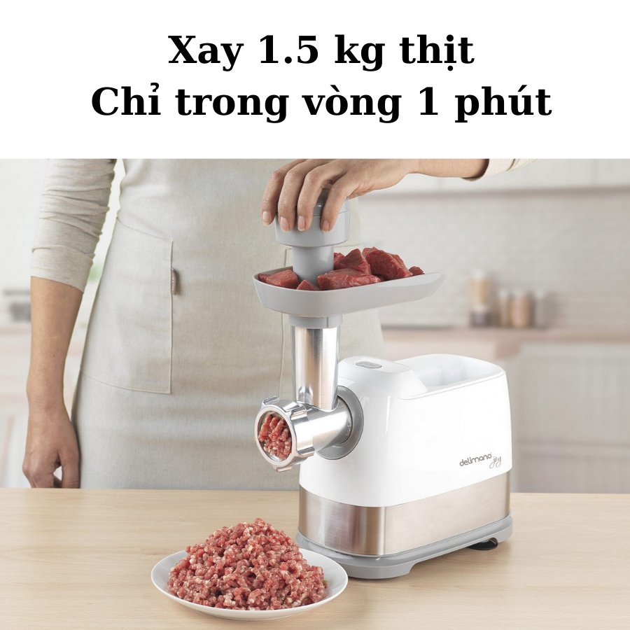 Máy xay thịt và đùn xúc xích DELIMANO 5 in 1- nghiền 1.5kg thịt chỉ 1 phút - xay bột, rau củ, tỏi ớt, làm mỳ..