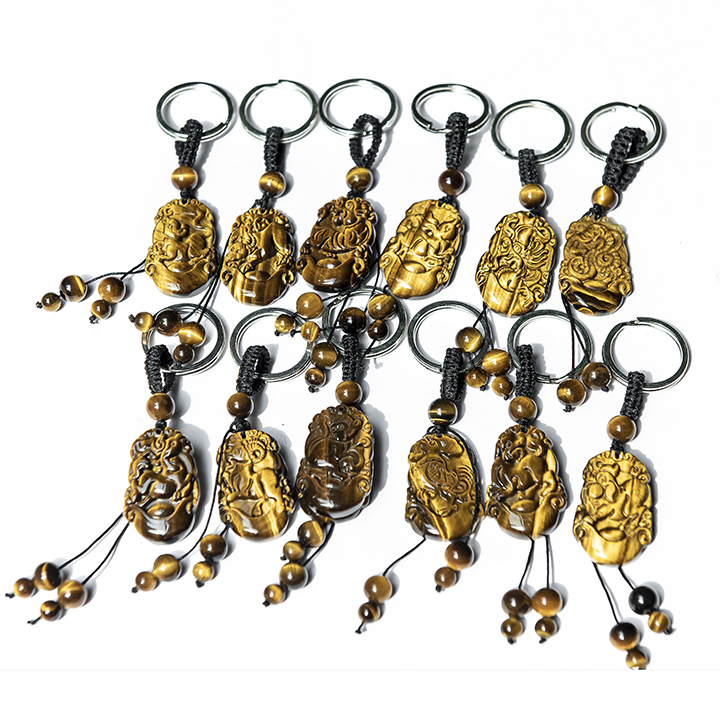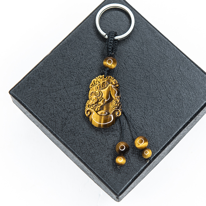 Móc khóa 12 Con Giáp đá Mắt Hổ Vàng tự nhiên - Tuổi Sửu | MKTIGYSUU02 VietGemstones