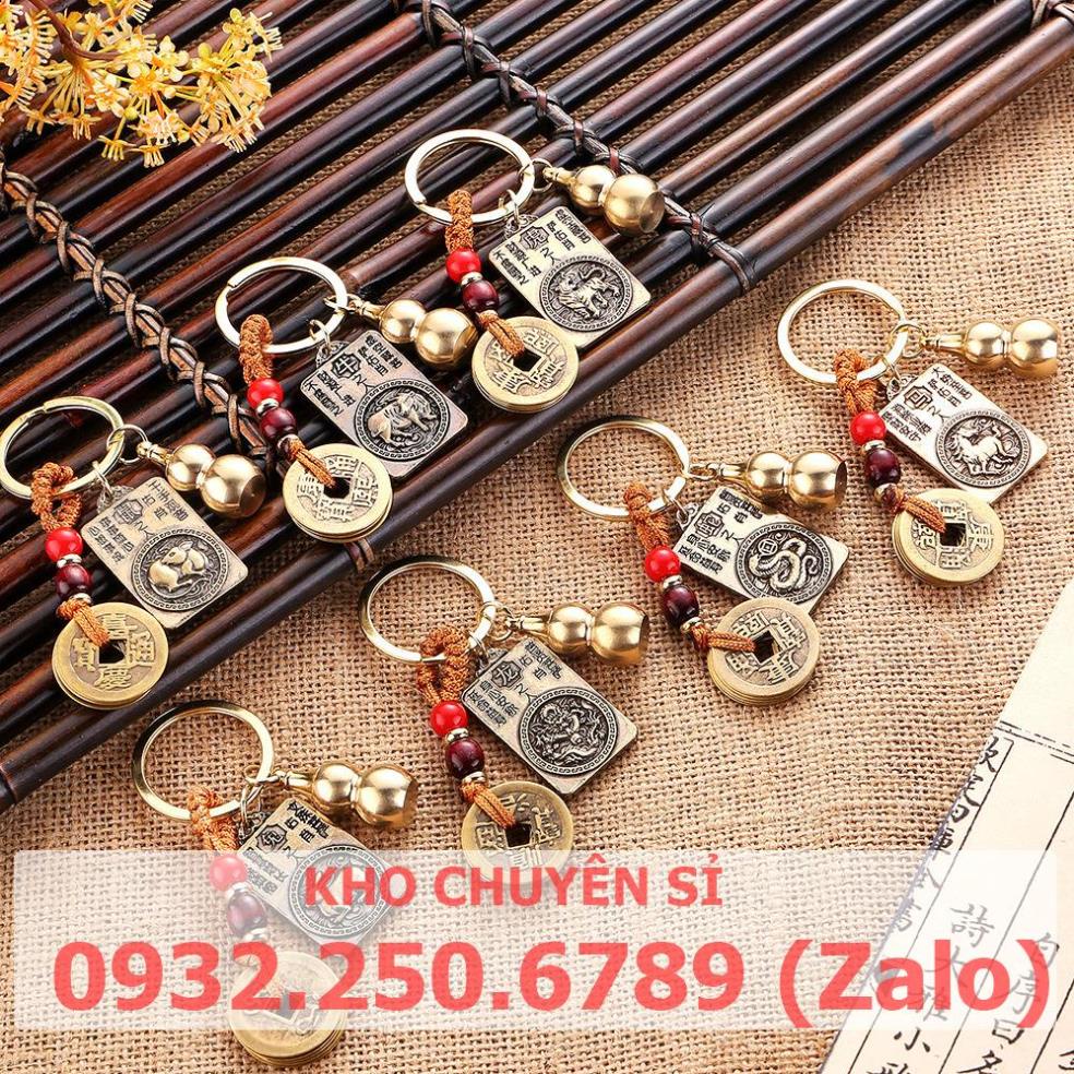Móc Khóa 3 Món Dây Vàng 5 Đồng Xu,Quả Bầu Rỗng Mix Thẻ Bài 2 Mặt 8 Vị Phật Hộ Mệnh Phù Trợ 12 Con Giáp
