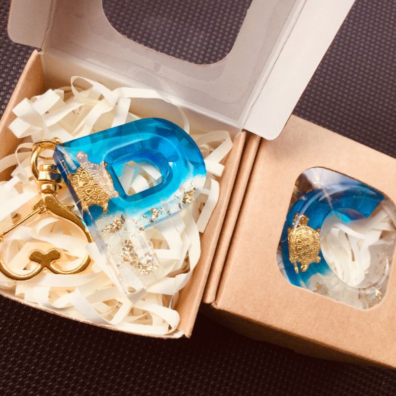 Móc khóa Chữ cái Rùa vàng may mắn trường thọ chiêu tài handmade 3D epoxy Resin quà tặng