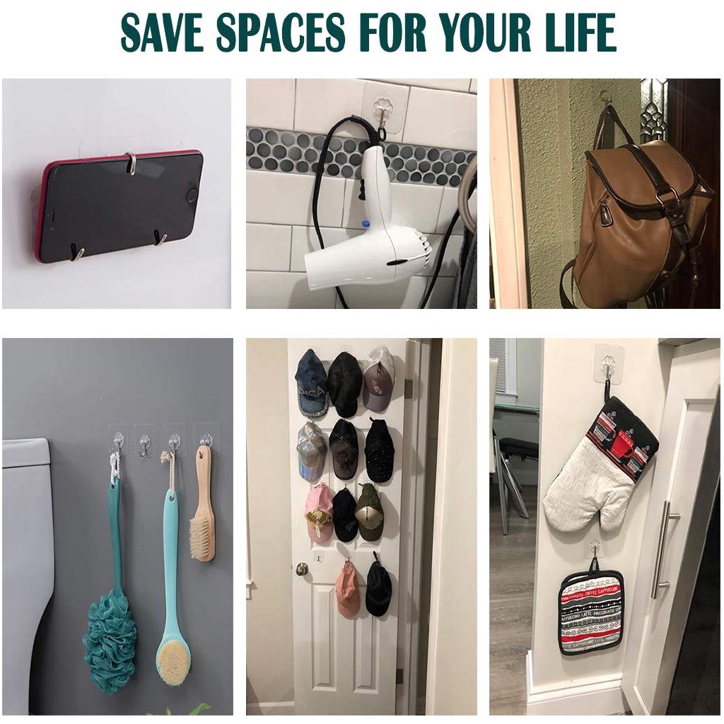 【Móc Kết dính Lên đến 10kg cho mỗi móc dán tường, không cần đinh】: Thiết kế trong suốt độc đáo làm cho nó gần như vô hình, khá thích hợp để trang trí nhà đẹp. 【Móc Dính Hoạt động trên nhiều loại bề mặt nhẵn】: Phòng tắm, tường bếp và trần nhà, dễ dàng đựng túi, áo khoá