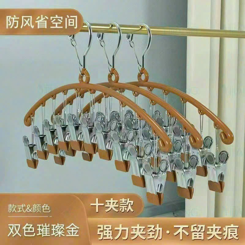 Móc treo phơi quần áo đồ lót, tất vớ, khăn mặt, có khóa chống gió, chống trượt với 10 móc khóa INOX cao cấp