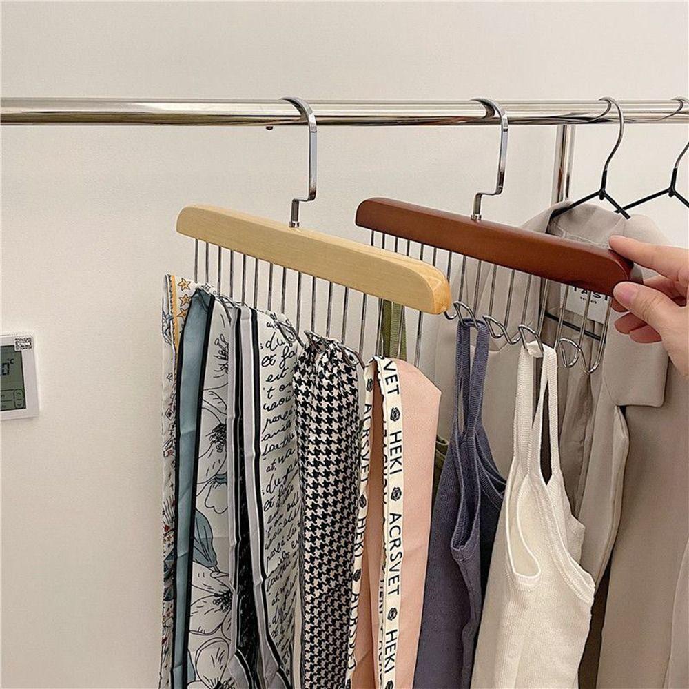 Móc Treo Quần Áo Ngực 8 Móc Bằng Gỗ Trơn Xoay 360 Độ Chống Trượt Tiết Kiệm Không Gian