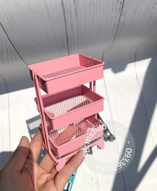 Mô hình kệ xe đẩy ikea trolley mini 3 tầng bằng kim loại cho nhà búp bê