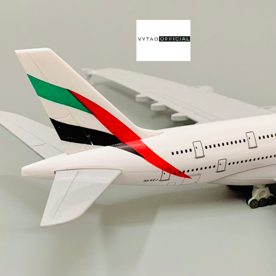 MÔ HÌNH MÁY BAY 20CM DÒNG AIRBUS A380 HÃNG EMIRATES CÓ BÁNH XE TỈ LỆ