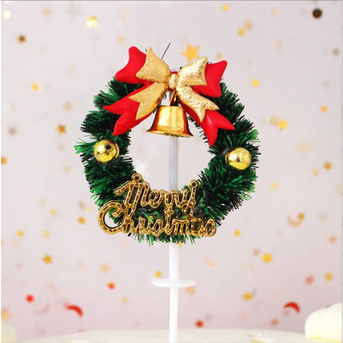 Mô hình vòng nguyệt quế có đế ghim decor giáng sinh, bánh kem