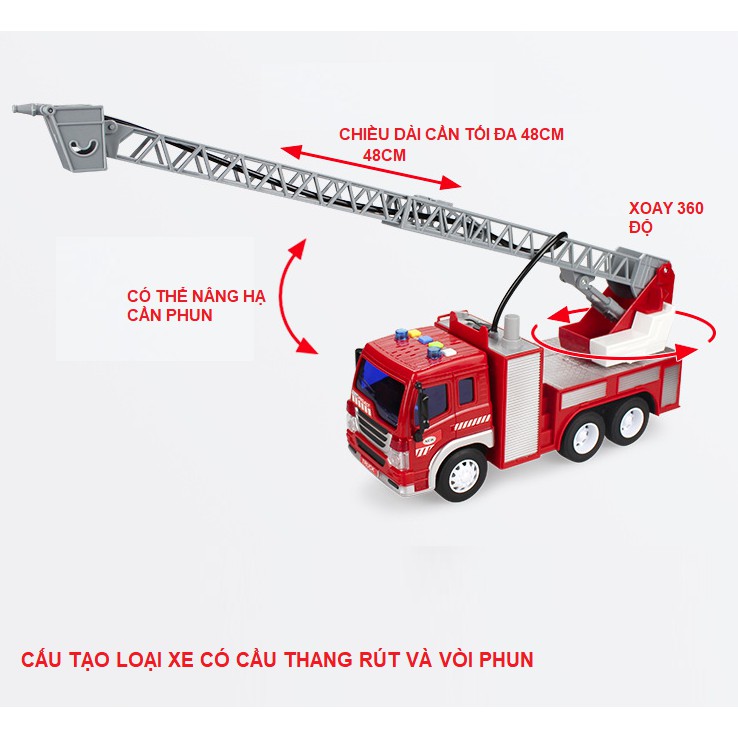 Mô hình xe ô tô cứu hỏa có cầu thang rút phun được nước thật đồ chơi trẻ em xe tỉ lệ 1:16