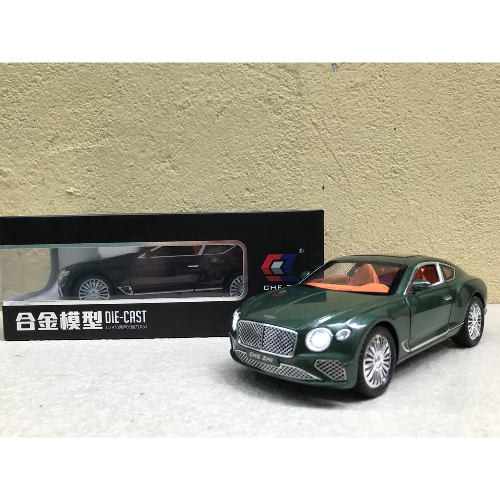 Mô hình xe Bently CONTINENTAL 1:24 Chất liệu: Kim loại. ( Hộp Muốt). Tính năng: Mở 3 cửa, capo trước, phuộc nhún đánh lái (bấm kèn vô lăng) âm thanh và đèn Kích thước: dài 22 cm, rộng 8,3 cm, cao 6 cm - Chức năng: Trưng bày , làm quà lưu niệm, Sinh nhật. - * Quy