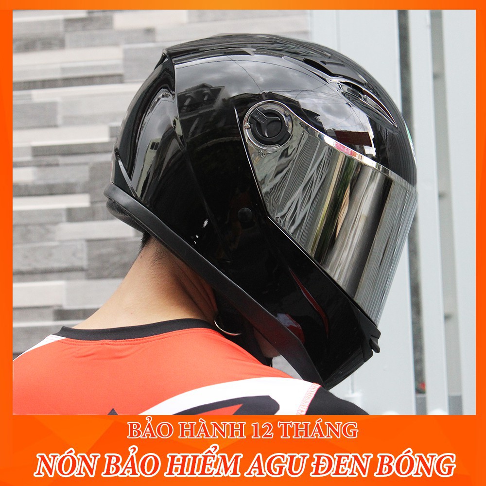 Nón bảo hiểm fullface AGU đi phượt màu đen bóng phiên bản giơi hạn cực ngầu - tặng kèm 1 balo dây rút chống trầy cho nón Thông tin chung của dản phẩm fullface AGU - Thương hiệu: AGU đen bóng - Màu sắc: Đen bóng - Kính ráp theo nón: Kính đen khói như hình - Trọng lượng nón: ~900gram - Có tem QR đạt chuẩn chất lượng do nhà nước cấp phép lưu hành thị trường - Bảo hành chính hãng công ty 12 tháng - Vỏ nón cấu tạo từ nhựa ABS nguyên sinh - Lót nón câu tạo thoáng khí, chống hôi và ẩm