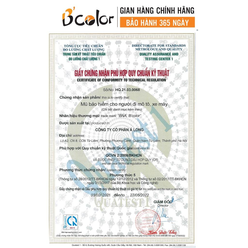 Mũ Bảo Hiểm B'color Loại Nửa Đầu Màu Trắng Bóng Kèm Lưỡi Trai B’Color là nhãn hiệu mũ bảo hiểm dành cho giới trẻ, đáp ứng đầy đủ các tiêu chuẩn về kỹ thuật và an toàn do Tổng cục Tiêu chuẩn Đo lường Chất lượng cấp. ƯU ĐIỂM NỔI BẬT - Lõi xốp làm bằng nhựa EPS là bộ phận quan trọng để bảo vệ bộ não và hấp thụ xung động khi xảy ra va đập, được thiết kế với độ dày đạt chuẩn. - Vải lót sử dụng chất liệu Polyester, lớp đệm bảo vệ tạo cảm giác êm ái và thoải mái khi sử dụng. Lớp lót có dập nổi tên nhãn hiệu B’Color 1. Sản phẩm bao gồm: - Mũ bảo hiểm - Lưỡi trai gắn kèm mũ - Phiếu bảo hành 2. Trọng lượng mũ:600 gram Sản phẩm được sản xuất tại Việt Nam bởi Công ty Cổ phần Á Long Cam kết sản phẩm chính hãng, chất lượng đạt chuẩn, có nguồn gốc xuất xứ rõ ràng Bảo hành chính hãng 12 tháng. Hỗ trợ đổi trả trong vòng 7 ngày kể từ khi nhận hàng với các lỗi do nhà sản xuất. Giá sản phẩm trên Tiki đã bao gồm thuế theo luật hiện hành. Bên cạnh đó, tuỳ vào loại sản phẩm, hình thức và địa chỉ giao hàng mà có thể phát sinh thêm chi phí khác như phí vận chuyển, phụ phí hàng cồng kềnh, thuế nhập khẩu (đối với đơn hàng giao từ nước ngoài có giá trị trên 1 triệu đồng).....