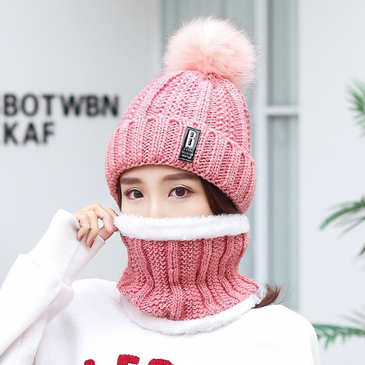 Mũ Len Nữ Thời Trang Hàn Quốc Nón Len Kèm Khăn Choàng Cổ Ấm Áp Cho Mùa Đông