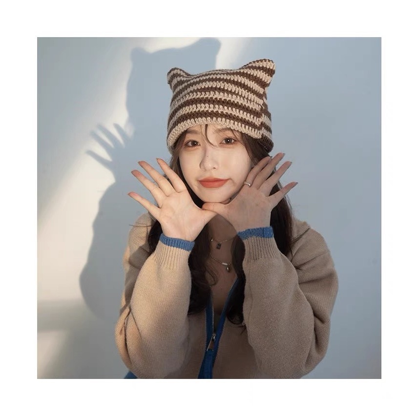 -🍊 Mũ len tai mèo xinh xắn phong cách Nhật Bản