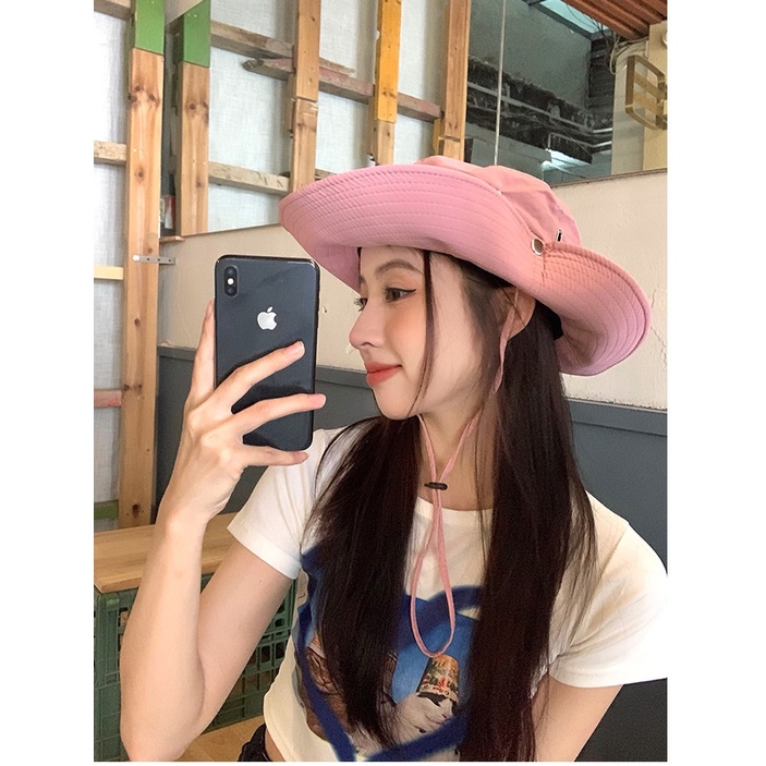 -🍊 Mũ nón cao bồi tai bèo vải dù có dây buộc phong cách Y2K