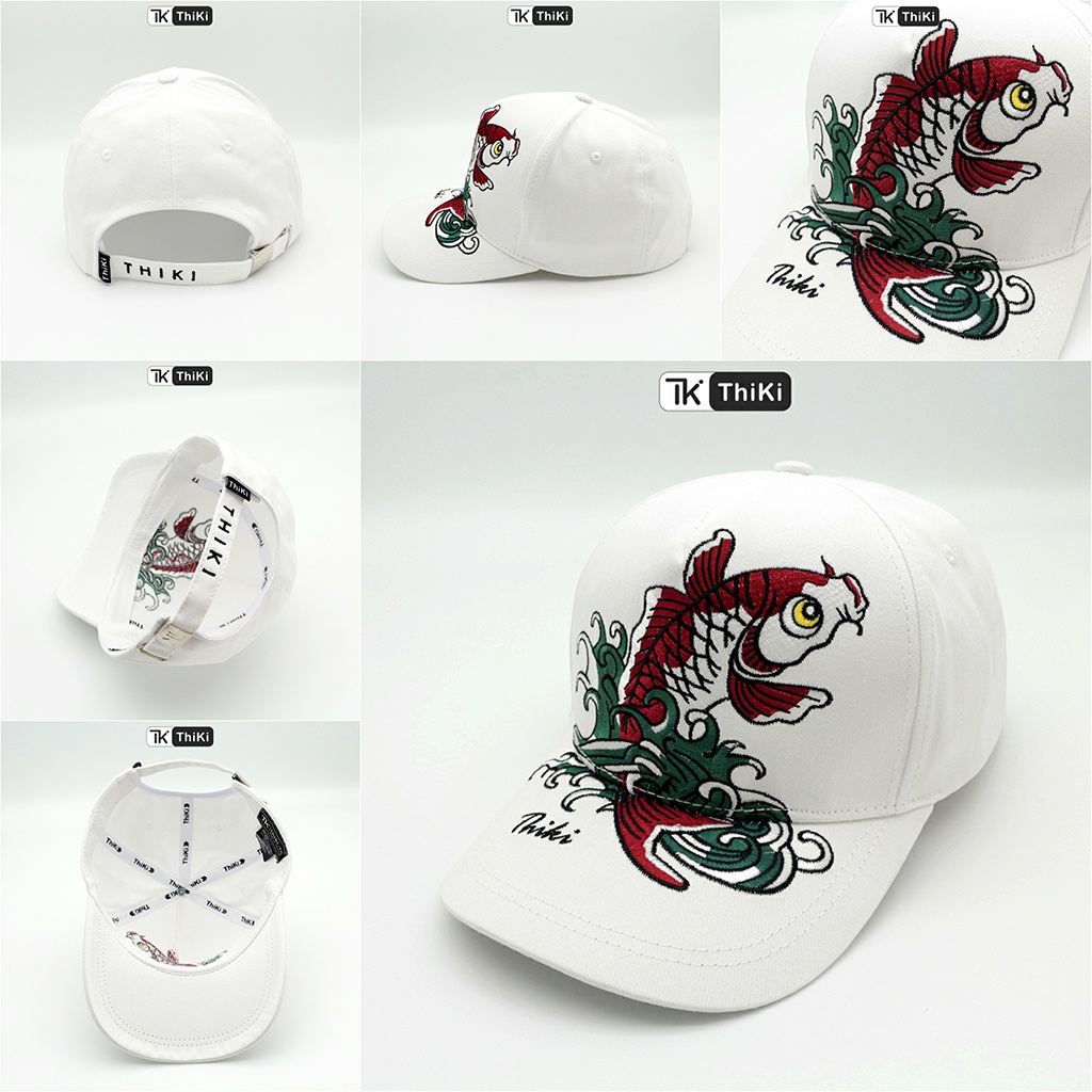 Tên Sản Phẩm: Mũ Nón Lưỡi Trai Hình Cá Chép THIKI chính hãng - Chất liệu: Kaki - Form: Chuẩn - Thiết kế: Hình thêu 2D cầu kỳ - Khóa: inox chống gỉ - Size: vòng đầu 54-58 Chính sách Thiki – Miễn phí đổi hàng cho khách mua ở Thiki Official Store trong trường hợp bị lỗi