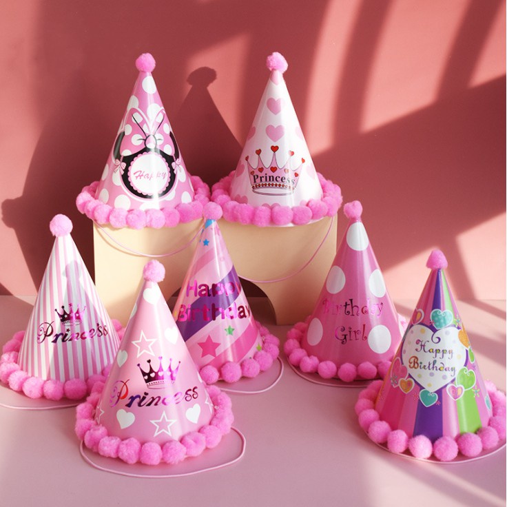 Mũ Sinh Nhật!Mũ Lưỡi Trai Đính Banh Lông Cho Trẻ