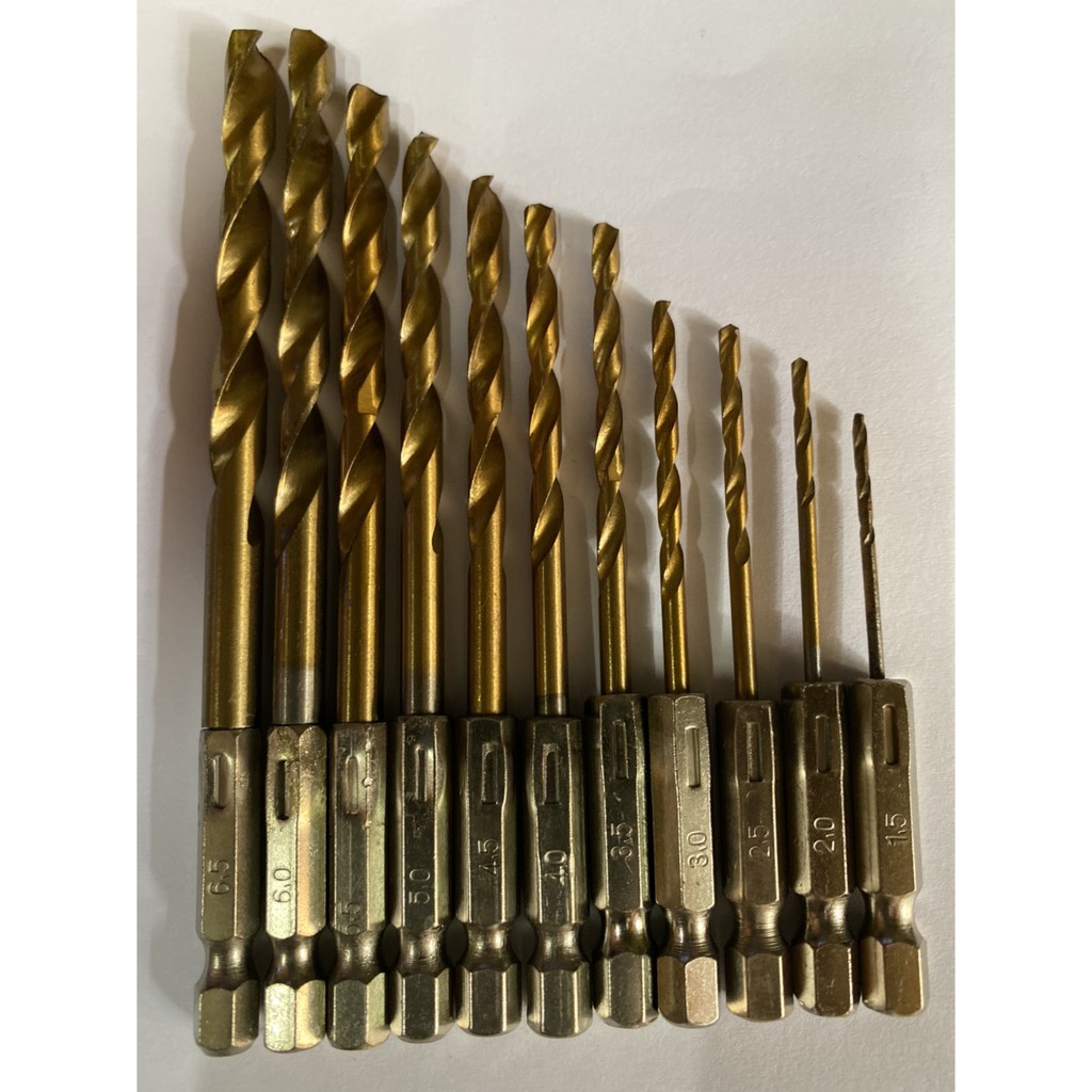 0797958389 mũi khoan HSS chuôi lục giác 1.5 - 6.5mm _ Chất liệu: thép gió HSS phú Titanium tăng độ bền và chịu nhiệt _ Thích hợp khoan trên chất liệu gỗ, nhựa, thạch cao, nhôm mỏng _ Chuôi cán lục giác 6.35mm phù hợp với máy bắn vít và cả máy khoan _ Quy cách các mũi khoan: 1.5 - 2.0 - 2.5 - 3.0 - 3.5 - 4.0 - 4.5 - 5.0 - 5.5 - 6.0 - 6.5 mm