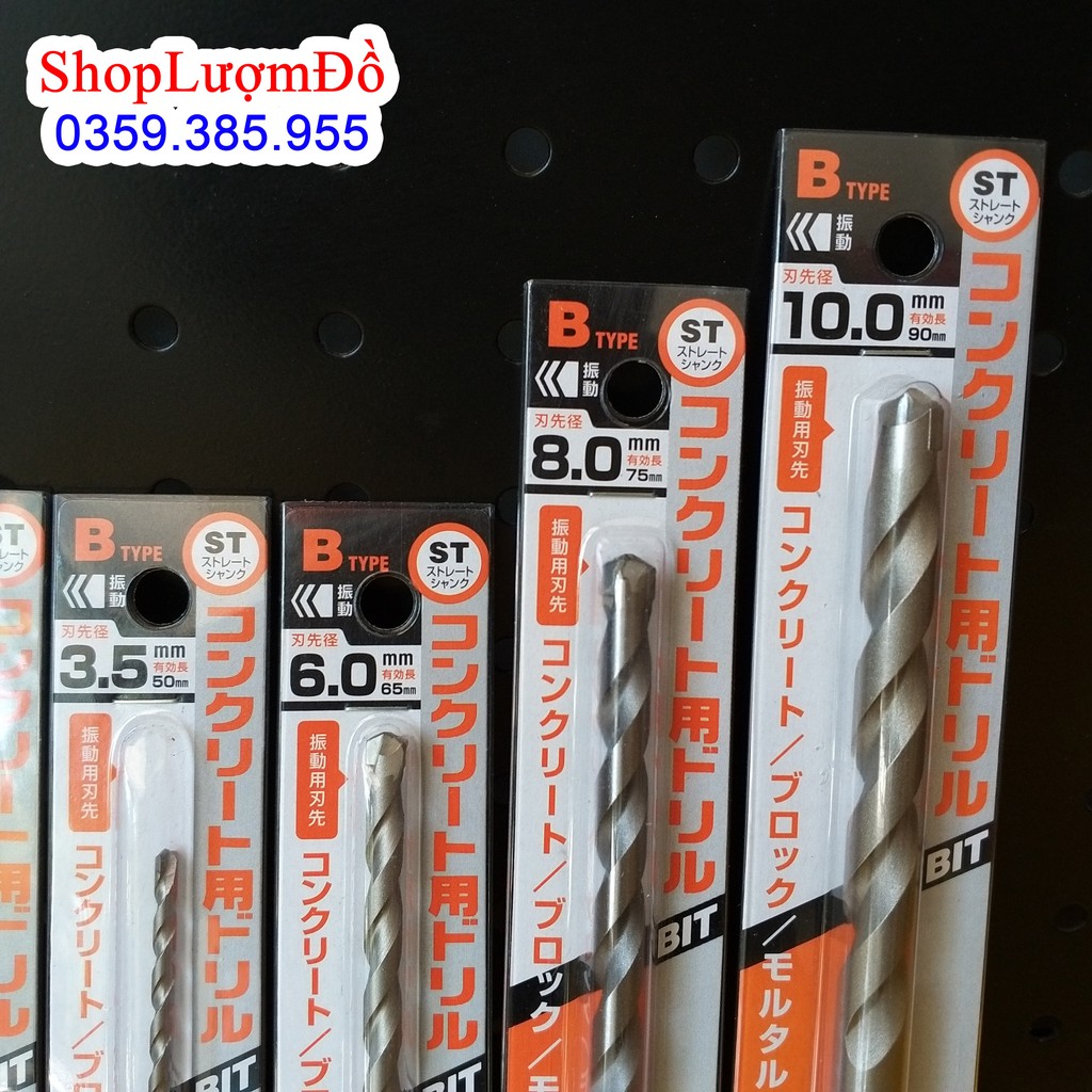 - Mã sản phẩm: #B - Công dụng: Khoan đá, bê tông, tường gạch.. - Đặc trưng: Đầu mũi khoan được làm bằng thép hợp kim siêu cứng (SKS), đầu mũi được mài mòn và khả năng chống sốc cao. Giảm khả năng uốn cong đến mức tối thiểu. - Lưỡi cắt sắc bén với thiết kế cắt cạnh, đầ