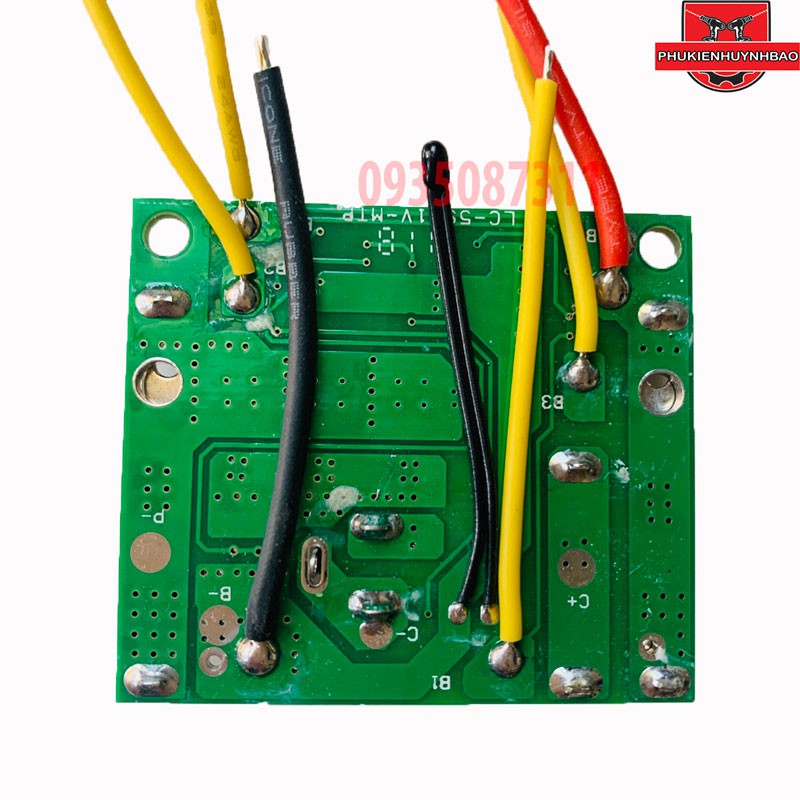 Thông số mạch: - Sạc vào (DC in): 21V DC - Giắc DC in: Giắc cái 5.5*2.5mm. - Chân tiếp xúc loại cao. - Điện thế bảo vệ: 15v - Điện thế sạc đầy: 21v - Dòng xả liên tục (hoạt động): 50A - Dòng xả quá tải (tức thời): 80A - Chức năng: Sạc bảo vệ cell pin Li-ion, dùng trong pin máy khoan, máy bắt vít Makita,... có mức điện thế từ 18v - 18.5v. Sử dụng 5 cell Li-ion nối tiếp hoặc 5 cặp cell mắc nối tiếp thậm chí nhiều hơn nữa. Lưu ý: Mạch này có thể không tương thích với máy khoan makita đời cao BL và/hoặc chân máy có 3 chấu tiếp xúc (hình ngôi sao). Khắc phục: Nối hai chân C+ và P+ bằng rờ le nhiệt. Khuyến nghị: - Đây là mạch sạc và bảo vệ pack pin Li-ion, đa năng, hoàn toàn không phải mạch pin máy khoan hay của riêng bất kỳ thiết bị nào. Mạch này có thể sử dụng cho nhiều thiết bị dùng pin sạc khác nhau. - Nếu đóng 5S-1P (5 cell nối tiếp) thì nên chọn cell có dòng xả từ 15C - 20C khi lắp pin máy khoan, bắt vít, máy cưa tải lớn (dòng xả cao). - Nếu đóng 5S-2P (5 cặp cell nối tiếp) thì nên chọn cell có dòng xả từ 10C - 15C khi lắp pin máy khoan, bắt vít, máy cưa tải lớn (dòng xả cao). - Tuy nhiên nếu chỉ dùng cho máy bắt vít hoặc khoan có công suất nhỏ thì có thể chọn cell có dòng xả 5C - 10C thay thế. - Các cell (cặp cell) phải đều volt với nhau và sạc đủ volt (3.7V - 3.9V) trước khi lắp vào mạch. Tránh sạc đầy trên 4.2V bằng sạc rời như sạc dự phòng và/hoặc nguồn DC 5V khác. - Hàn theo thứ tự từ B- (0V), B4(3.6V/4.2V), B3(7.2V/8.4V), B2(10.8V/12.6V), B1 (14.4V/16.8V) và B+ (18V/21V). - Giắc cái DC In 5.5*2.5mm là ngõ sạc vào của mạch. Không sử dụng đồng thời ngõ này 2 chức năng cùng lúc. Nghĩa là sạc thì không mở máy và nếu mở máy thì rút sạc khỏi mạch pin.