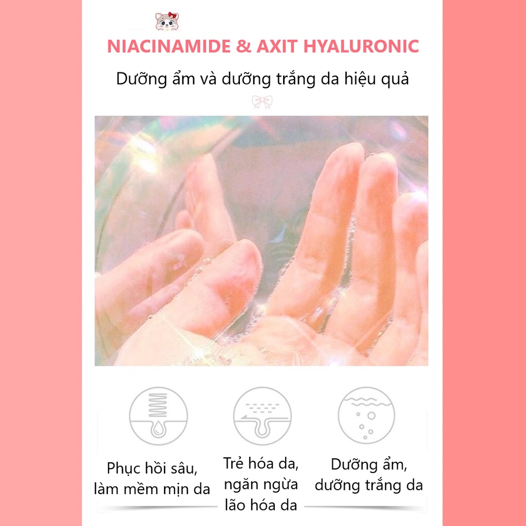 🐾 Mặt Nạ Dưỡng Da Tay DOUMEI Con Mèo Dưỡng Ẩm Dưỡng Trắng Da 40g (DM08) 🐾 Thương hiệu: DOUMEI Mặt nạ tay DOUMEI có thiết kế dễ thương bắt mắt hình con mèo cute. Chỉ mất 10-15 phút, em này giúp dưỡng trắng, dưỡng ẩm da và cải thiện nếp nhăn, "giải cứu" đôi tay bạn nhanh chóng và hiệu quả. Vừa đắp mặt nạ, bạn vừa có thể nghịch điện thoại thỏa mái. Trải nghiệm ngay cảm giác thư giãn như spa trong chính ngôi nhà của bạn! 🐾 Trọng lượng: 40g 🐾 Thành phần: Thành phần an toàn và lành tính cho da - Axit Hyaluronic: Dưỡng trắng da, phục hồi và trẻ hóa da - Niacinamide: Dưỡng ẩm sâu cho da, làm mềm da, ngăn ngừa lão hóa - Collagen thủy phân: Cải thiện da khô, mất nước, giúp da mịn màng, trắng sáng - Glycerin: Tạo lớp màng bảo vệ da, dưỡng ẩm và giữ ẩm cho da 🐾 Công dụng: - Dưỡng da trắng sáng, đều màu - Dưỡng ẩm sâu và giữ ẩm giúp da mềm mại, mịn màng - Cải thiện tình trạng da chai sần, thô ráp - Trẻ hóa làn da, giúp da căng bóng, đàn hồi hơn - Giảm nếp nhăn trên đầu khớp tay - Se khít lỗ chân lông 🐾 Hướng dẫn sử dụng: B1: Rửa sạch tay và lau khô B2: Cắt đôi mặt nạ tay B3: Mang mặt nạ tay 10 - 15 phút B4: Rửa sạch lại với nước và thoa kem dưỡng da tay 🐾 Bảo quản: Tránh ánh nắng mặt trời và môi trường nhiệt độ cao