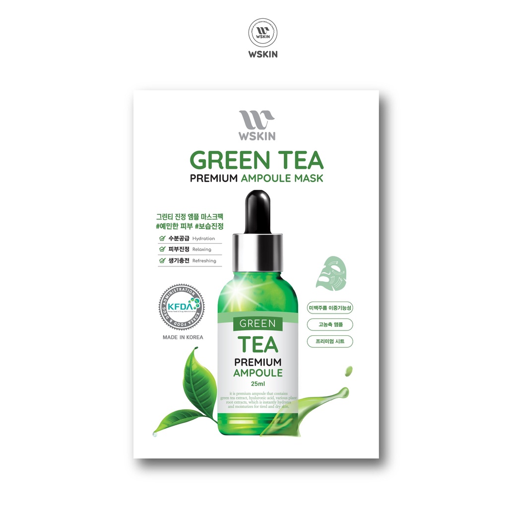 ❤️ CUỘC ĐỔ BỘ CỦA SIÊU MẶT NẠ TINH CHẤT TRẮNG DA HÀN QUỐC ❤️ WSKIN PREMIUM AMPOULE MASK 🔸Sản phẩm mới ra mắt của WSKIN COSMETICS. Thành phần và công nghệ đột phá với tinh chất ampoule chuẩn spa. Mỗi dòng mặt nạ giấy của WSKIN mang chức năng khác nhau cho từng nhu cần chăm sóc da mỗi ngày: ✨ Dưỡng trắng & giảm thâm nám với mặt nạ WSKIN Whitening Vitamin C. ✨ Dưỡng trắng & phục hồi dành cho da nhạy cả với mặt nạ WSKIN Relaxing B5 + Lô hội. ✨ Dưỡng trắng & nâng cơ dành cho da lão hoá với mặt nạ WSKIN Collagen HA. ✨ Dưỡng trắng & giảm dầu – sáng da – chống oxy hóa – cấp nước: Trà xanh ✨ Dưỡng trắng chăm sóc da chuyên sâu giúp tăng sinh collagen, nâng cơ, trẻ hóa da với tế bào gốc Stem Cell CAM KẾT: 🔸 Sản phẩm được sự cấp phép của Bộ Y tế. 🔸 Thành phần dưỡng trắng an toàn, không chứa chất tẩy trắng, corticoid. 🔸 Nhập khẩu chính hãng Hàn Quốc.