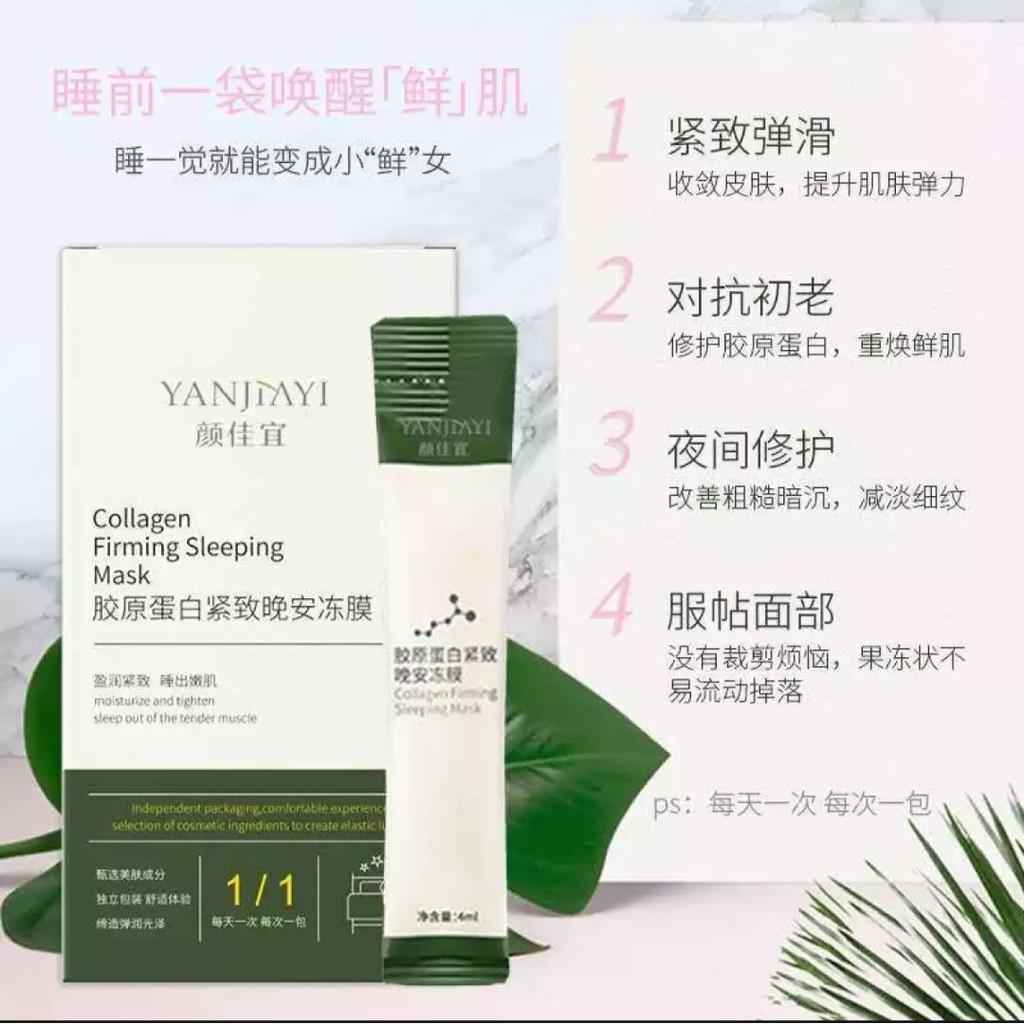🍃🍃MẶT NẠ NGỦ COLLAGEN YANJIAYI🍃🍃 🌿Sau 1 đêm đắp mặt nạ kì diệu nè các chị ,DA CĂNG BÓNG, da nâng cơ tức thì giảm nếp nhăn luôn nhé ạ . 🌿Đắp qua đêm xong cảm giác như mask nó lấy collagen trong miếng thạch lấp đầy tất cả các lỗ chân lông và ngấm sâu vào biểu bì khiến các nếp nhăn li ti phẳng ra ngay lập tức vào sáng hôm sau. Da căng đầy, lỗ chân lông nhỏ lại và cơ mặt nâng lên căng bóng như tiêm filler vào da. Có bao nhiêu collagen nó thẩm thấu hết 🌿Mask chất như nước cất thế này thì ngại gì mà không đầu tư nuông chiều da mình một chút cho bỏ công chăm sóc nhỉ 🐳🐳HDSD: 👉🏻Để mask trong tủ lạnh để tinh chất collagen có thể thẩm thấu nhanh nhất lên da. 👉🏻Sau khi rửa mặt thật sạch với srm thì dùng để qua đêm sáng sau rửa lại mặt và cảm nhận. DÙNG BUỔI TỐI TRƯỚC KHI NGỦ LÀ TỐT NHẤT
