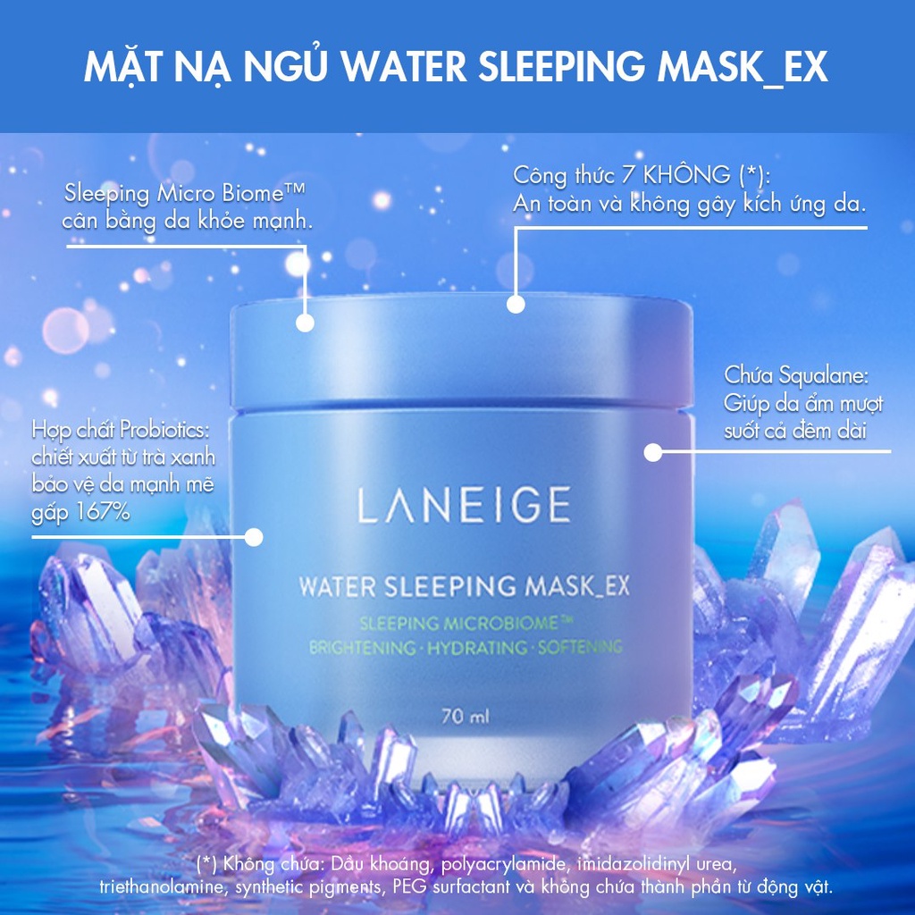 ⭐⭐⭐⭐⭐ Mặt nạ ngủ dưỡng ẩm Laneige Water Sleeping Mask 70ml KOREA Thời khóa biểu bận rộn, đôi lúc bạn sẽ quên chăm sóc bản thân. Vậy tại sao không tận dụng 8 giờ đi ngủ mỗi ngày để làm đẹp cho mình? Mặt nạ ngủ Laneige Water Sleeping Mask sẽ giúp bạn hi