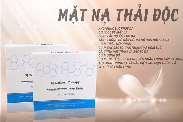 Mô tả MẶT NẠ THẢI ĐỘC CACBON CO2 DJ MẶT NẠ THẢI ĐỘC CACBON CO2 DJ Giúp da trắng sángcung cấp dưỡng chất chống oxy hóa,giúp thải độc dalàm chậm và ngăn chặn quá trình lão hóa dacung cấp các dinh dưỡng thiết yếu cho làn da tươi trẻ.Cải thiện tình trạng mụn ẩn dưới da, giúp bề mặt da mịn màng THANH LỌC LÀN DA Da nhiễm độc chì , nhiễm cỏticoid do kem trộn , dị ứng mỹ phẩm ,… thì làm ngay e này nha LIỆU TRÌNH CARBON KHOÁNG CHẤT ( phương pháp đưa CO2 trực tiếp vào da ) Quá trình này nhằm đào thải độc tố và chất bẩn có trong da cũng như thanh lọc da sâu, đem lại bầu khí quyển trong lành cho da, giúp da trở nên tinh khiết. Carboxy còn giúp các mao mạch vận chuyển ngay lập tức một lượng Oxy lớn đến cho các tế bào da, tái tạo và trẻ hóa da hiệu quả. Tác dụng :Giúp da trắng sángcung cấp dưỡng chất chống oxy hóa,giúp thải độc dalàm chậm và ngăn chặn quá trình lão hóa dacung cấp các dinh dưỡng thiết yếu cho làn da tươi trẻ.Cải thiện tình trạng mụn ẩn dưới da, giúp bề mặt da mịn màng Quy trình ✏️B1: thăm khám- tư vấn ✏️B2: rửa mặt, vệ sinh da, tẩy tế bào chế t✏️B3: xông hơi, hút mụn cám bả nhờn ✏️B4: tạo đường dẫn cho CO2 thẩm thấu vào da ✏️B5: thoa gel natri carbonat và mặt nạ khô tạo ra carboxy ✏️B6: ép CARBOXY nhẹ nhàng trên da giúp CO2 đi sâu vào tầng trung bì da. ✏B7: Kết hợp ánh sáng sinh học. Làm dịu da và xông lạnh se khít lỗ chân lông