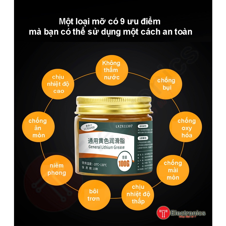 Mỡ Bôi Trơn Máy Móc Gia Dụng Gốc Lithium 85Gr/100Gr mỡ bôi trơn sâu gốc Lithium để loại bỏ tiếng ồn bất thường Bôi trơn chống mài mòn chống gỉ, chống ăn mòn Một loại mỡ có 9 ưu điểm mà bạn có thể sử dụng một cách an toàn:Không thấm nước, chịu nhiệt độ cao, chống bụi