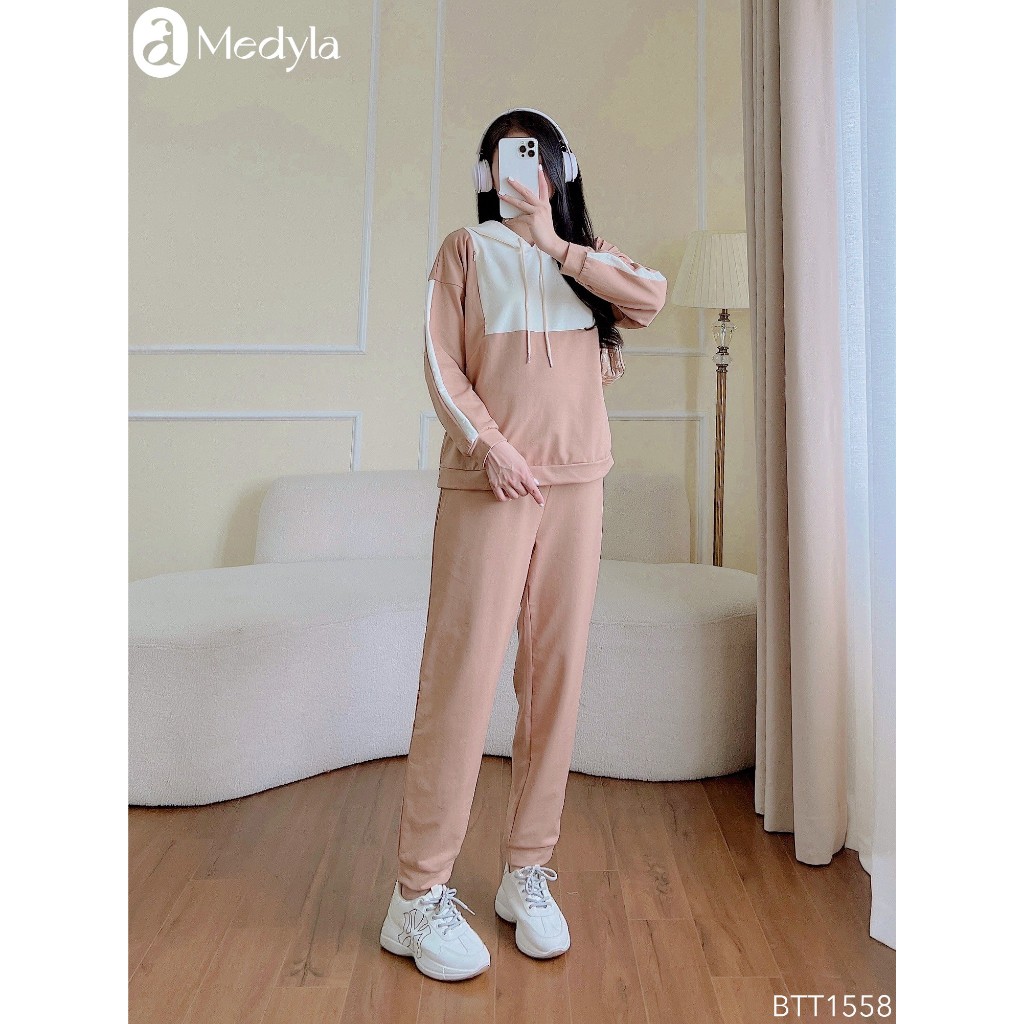MEDYLA - Bộ đồ bầu mặc nhà Hoodie nỉ da cá có mũ có khóa dày dặn mặc được sau sinh - BTT1558