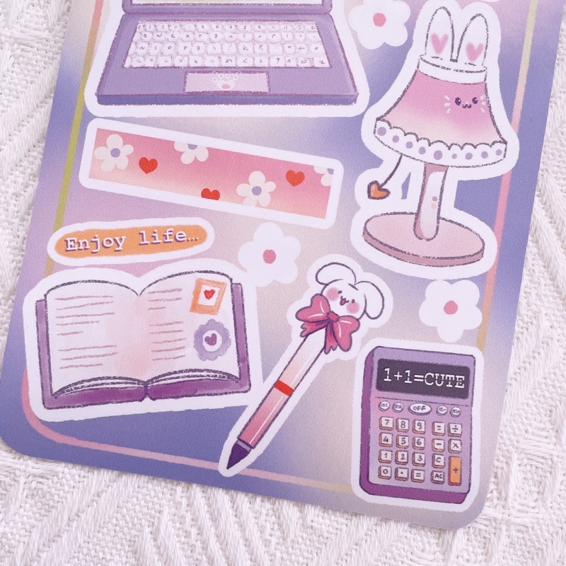 Meimei Sticker - Kyun Days - Set sticker đồ dùng học tập trang trí sổ xinh xắn tông tím hồng