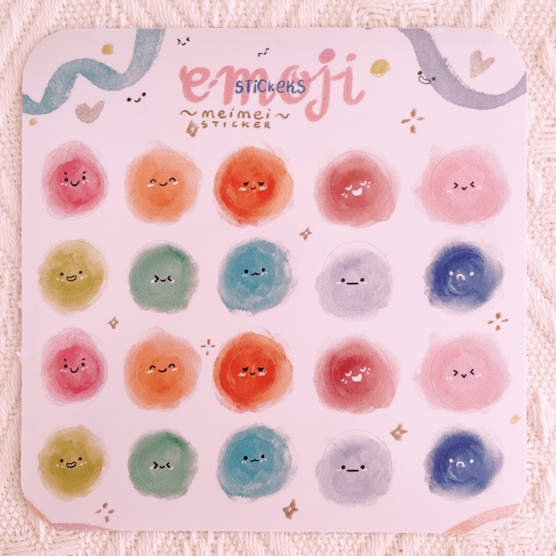 Meimei Sticker - Sticker giấy 20 emoji tròn màu nước dễ thương trang trí sổ