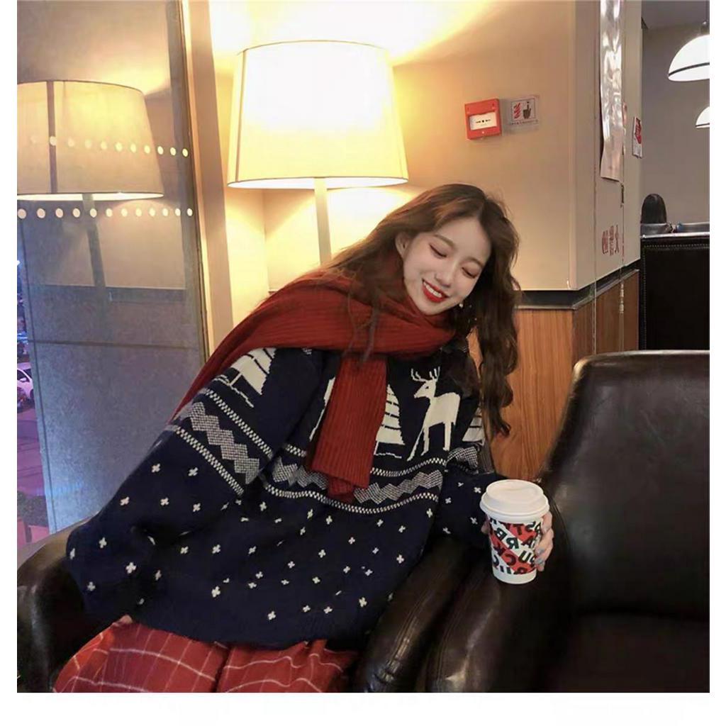 🎄Merry Christmas🎄 Áo Sweater Tay Dài Cổ Tròn Thời Trang Hàn Quốc Cho Nữ